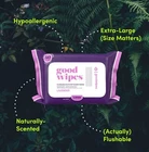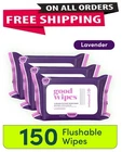 Goodwipes Flushable & Biodegradable Wipes with Botanicals, Lavender, 3 Packs (150 Total Wipes) Description: Butts Deserve Better Hypoallergenic & plant-based flushable wipes are perfect for any time of the day, that time of the month, noon and night, 365 days out of the year. Who doesn't like to stay fresh down there Does toilet paper really make you feel clean Add these to your daily routine for quick, soothing refreshment! Each wipe is suitable for front or back! ) So level up and treat your butt right. Because you're a Massterpiece Specifications: Make Me Feel So Good: Butts Deserve Better than dry and scratchy toilet paper. There is no better way to care for your butt post-poo than with Goodwipes. Toilet Paper spreads and smears poop, cuts your skin, and leaves remnants behind. Goodwipes have a Heavenly feel that calms, cools and soothes your rear end with no irritation. Baby wipes cannot be flushed and leave a soapy and filmy residue. The Lavender Scent will leave your behind smelling of sweet floral undertones. Brand Goodwipes California Shipping Warning