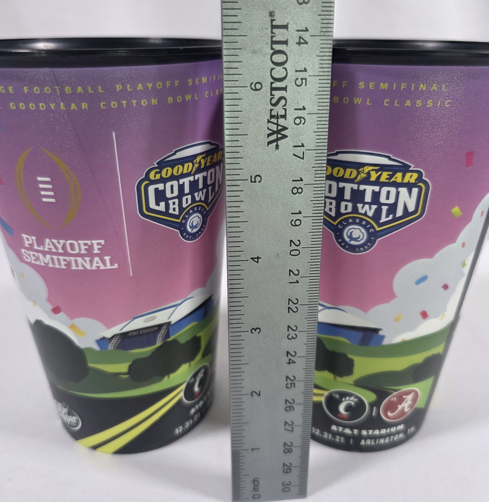 Goodyear Cotton Bowl Stadium Souvenir Tumbler Set Of 2 University Of Alabama. Condition is Used. Shipped with USPS Ground Advantage.
