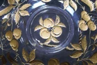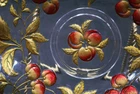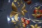 Goofus glass, either a shallow bowl or a high rise plate? Ha, Red and gold cherries with gold leaf. There is some table wear to the bottom of the dish. There is also some paint lost on the leaf's and cherries. The piece measures 10 and 3/8" from outside edge to outside edge. And about 2" tall. The dish weighs 1.10 pounds. No chips on the edges and I did not feel any chips on the piece itself. No cracks. There is a possibility that there are utensil marks on the glass. It will need a better cleaning than what I gave it. as is condition please refer to the pictures for more description items will need to be cleaned better I do estimate high on the shipping weight Shipping is an estimate cost buyer to pay for actual shipping cost No international shipping free local pick up available within 3 days from the purchase date questions please Thanks