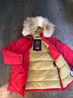 Auction for Brand Arctic Bay Canada ,Toronto parka with big coyote fur and beaver fur ..Made in Canada \WINNIPEG . TOP QUALITY BIG COYOTE FUR size l or xl red SHELL – TRUE NORTH TrueNorth is our signature fabric. It is the toughest fabric in our collection and best suited for most situations. made of water-repellent True north fabric made in the USA with a special Teflon finish making it resistant to snow, rain and wind. Durable water, wind and stain resistant fabric 152 GSM, 70% nylon 30% cotton weave With the higher nylon content comes better tensile strength and durability Coated with Dupont Teflon Shield+ water repellent finish Made in the USA Toronto is cosmopolitan, multicultural and a star on the global stage. Like the city that inspired it, the Arctic Bay Toronto parka is ready for anything – from after work to after parties, from hockey games to hip clubs, from brunch with friends to a night on the town. Anything goes: this is Toronto. TECHNICAL FEATURES Premium Canadian Duck Down 725 fill power Canadian origin coyote fur ruff Canadian origin real beaver fur beard guard 100% Nylon lining Temperature rating up to -45°C/-49°F ADDITIONAL FEATURES Non-removable hood with removable fur trim Moldable in-hood framing wire Telescopic sleeves with elasticized rib knit cuffs Centre front YKK two way zipper Wind flap with button closures Interior zip stash pocket Two-way side seam zipper for added comfort Leather trimmed cuffs for added detail Welt hip pockets Branded details include: Snaps, Lining, Zipper pull, Hanger Hologram on back patch with serial number for security Made in Canada We must be notified of your intention to return the item within 14 days of receipt. All returns must be pre-approved through the ebay return system. You then have 14 days to return the item from date of receipt . Before returning anything by mail to us for obtain an RA. Original purchase price will be refunded, less original shipping fee. Item must be returned unworn/unused and in the same condition in which it was received, with all original tags attached or packaging materials returned and attached in the same manner in which it was received. Buyer pays for return shipping.MSRP 985$Shipping Canada -25$ USA--30$ International -50$