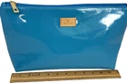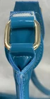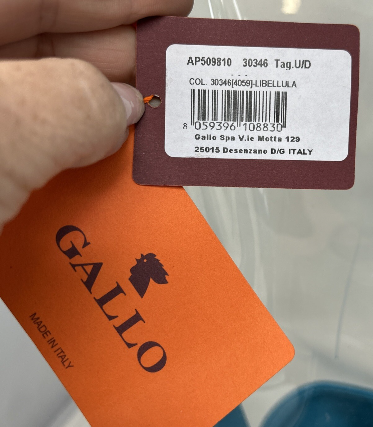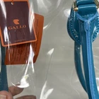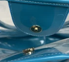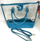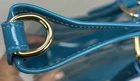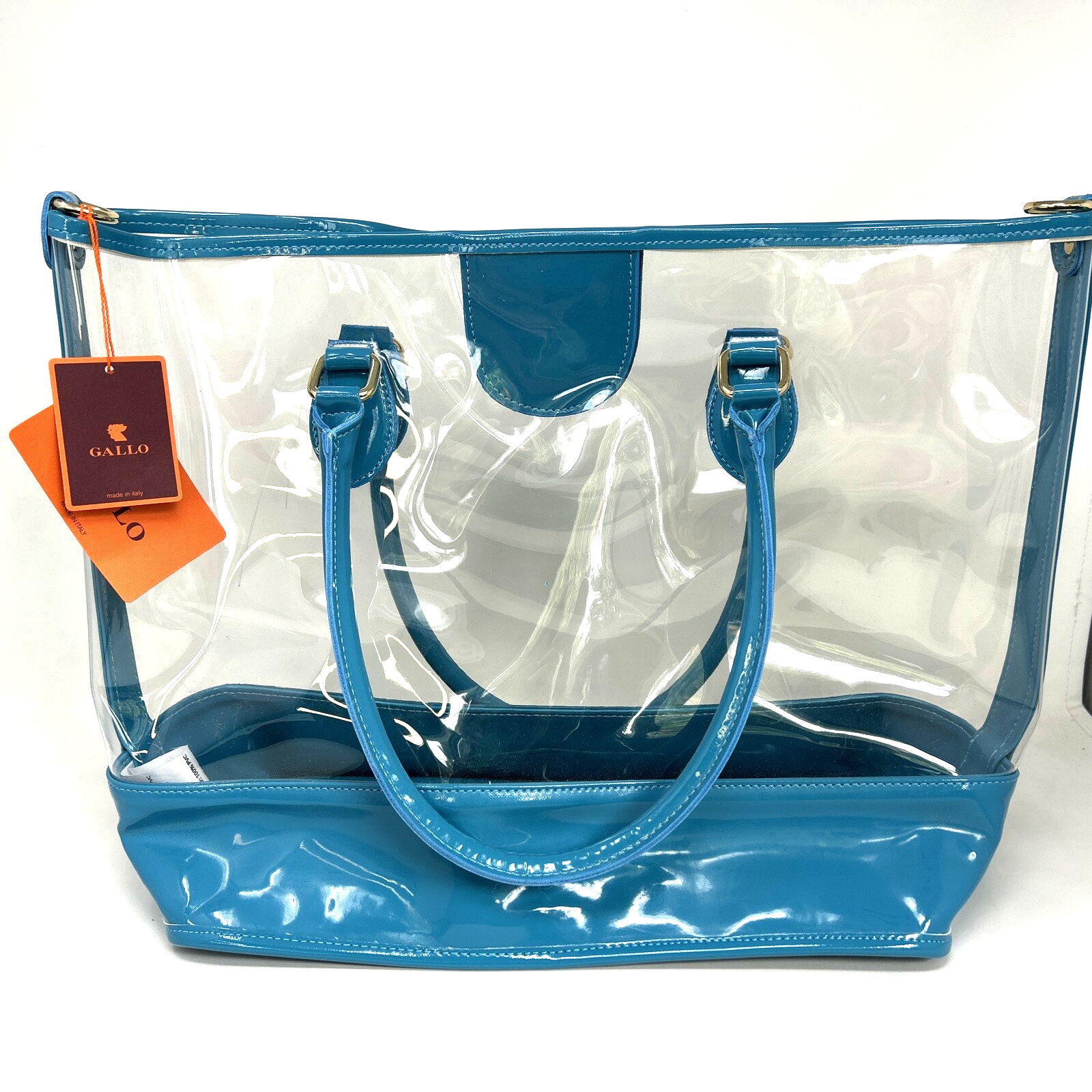 Stunning, hard to find Italian tote. Includes dust bag, detachable strap and smaller matching pouch for accessories. Elevate your day-to-day ensemble with the Gallo Tote Bag, a harmonious blend of functionality and style. Crafted in Italy, this tote boasts a sleek Turquoise polyurethane exterior, complemented by gold hardware accents. Designed for the modern woman, the bag is generously sized at 6.5” in width and 12” in height, ensuring ample space for all your essentials. The bag features a solid pattern that exudes sophistication, while the clear lining adds a touch of elegance to the interior. With a magnetic snap closure, your belongings stay secure, and the detachable strap along with the Turquoise polyethylene handle offers versatile carrying options. Whether you're off to the beach or enjoying a spa day, this tote is an impeccable choice for any leisurely outing. Please see last photo for scuff on the clear plastic from the pouch.