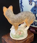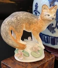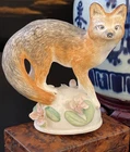 Stunning Rare Crown Staffordshire Figural Fox • Detailed Hand Painted B. Linley Adams Design • Marked • Height 3.75” I'm proud to offer this exquisite rare English Crown Staffordshire figural mantle table fox. A stunning display of English aesthetic in this sumptuous rare detailed hand painted figure by B. Linley Adams to present as an impressive focal point on its own or as part of a collection or arrangement. Marked on base with artist name and maker mark. Original I mport marks visible too. Excellent surviving example to own and treasure. * Listing is for fox only. Other items are for display purposes. Height 6”