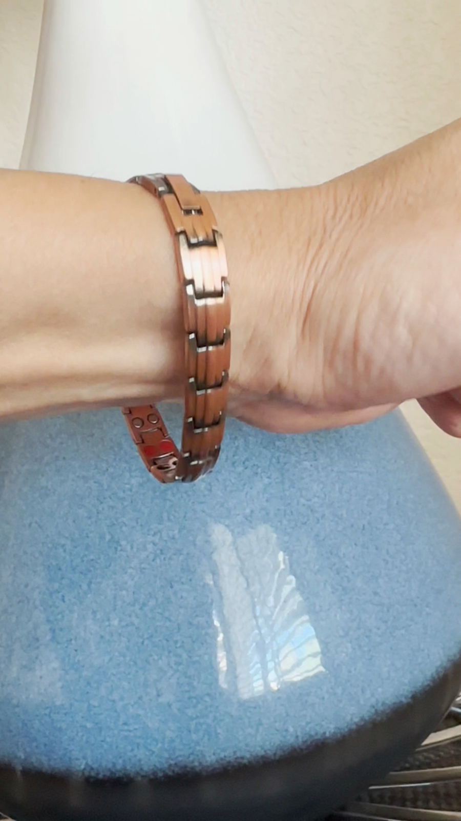 KEY TO GOOD HEALTH IS GOOD CIRCULATION...It works like Acupuncture without the needles! Perfect Uplifting Gift for your loved ones or Yourself! Free Extra Links and Adjusting Tool included, Same Day Free Shipping, Water-proof * BEST LOOKING, highest quality, Stylish American Designed and Precision Hand-Crafted Bracelets. We personally adjust and quality check every item before shipped. Just wear it, it looks great and its therapeutic, what more could you ask for? Treat yourself and your loved ones. * Relieves Aches and Pain, Helps Arthritis pain, Improves Circulation, Reduces Inflammation, Boosts Immunity, Improves Balance, Stress & Anxiety relief (Makes you feel better) * 44 max magnets with Pure Copper! Pure 99.95% Solid Copper bracelet with 5,000 Gauss Neodymium magnets (220,000 Gauss total). * KEY BENEFITS- Our bracelets may help increase balance, strength, flexibility, and energy as well as increase blood circulation to help relieve aches and pain. It may help healing process and induces sense of well-being. It's perfect for people with active life style like runners, playing golf or sports. Great gift for yourself and your loved ones. Try it, love it or 60 days money back guaranteed.