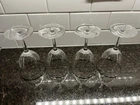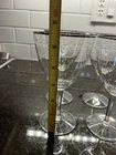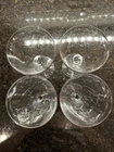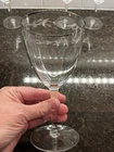 Set of 4 vintage Gorham Crystal Chanson water goblet wine glasses. Made in Germany in 1964, these elegant glasses feature a platinum-trimmed rim, a capacity of 10 oz, and a height of 6.5 inches. The round glasses have a glossy finish & a etched pattern. Perfect for all occasions, this mid-century modern stemware is a stylish addition to any collection. In very good vintage condition with no cracks or chips and minimal loss to platinum rim.