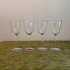 This vintage set of four Gorham Laurin crystal wine glasses is elegantly designed with a gold rim and ribbed backstamp. Handmade in Yugoslavia in 1982, each round wine glass stands at 7 1/4 inches tall with a 3-inch diameter. The contemporary style and glossy finish make them suitable for all occasions, while the "Laurin" pattern adds a touch of sophistication. Care instructions recommend hand washing only, and the glasses are crafted with high-quality crystal. Perfect for wine lovers, this set showcases a unique blend of elegance and craftsmanship from the 1980s.