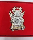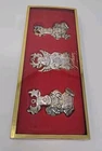 Add a touch of vintage charm to your Christmas decor with this set of three Gorham silver-plated reindeer ornaments. The medium-sized ornaments feature a mid-century modern style and are perfect for any Christmas occasion. Each ornament is an original piece from the Gorham Ornaments collection and is made of high-quality silver-plated material. Celebrate the holiday season with these beautiful and unique ornaments that are sure to impress your guests. The reindeer shape and silver color make them a perfect addition to any Christmas tree. Get into the festive spirit with these timeless and elegant pieces from Gorham.