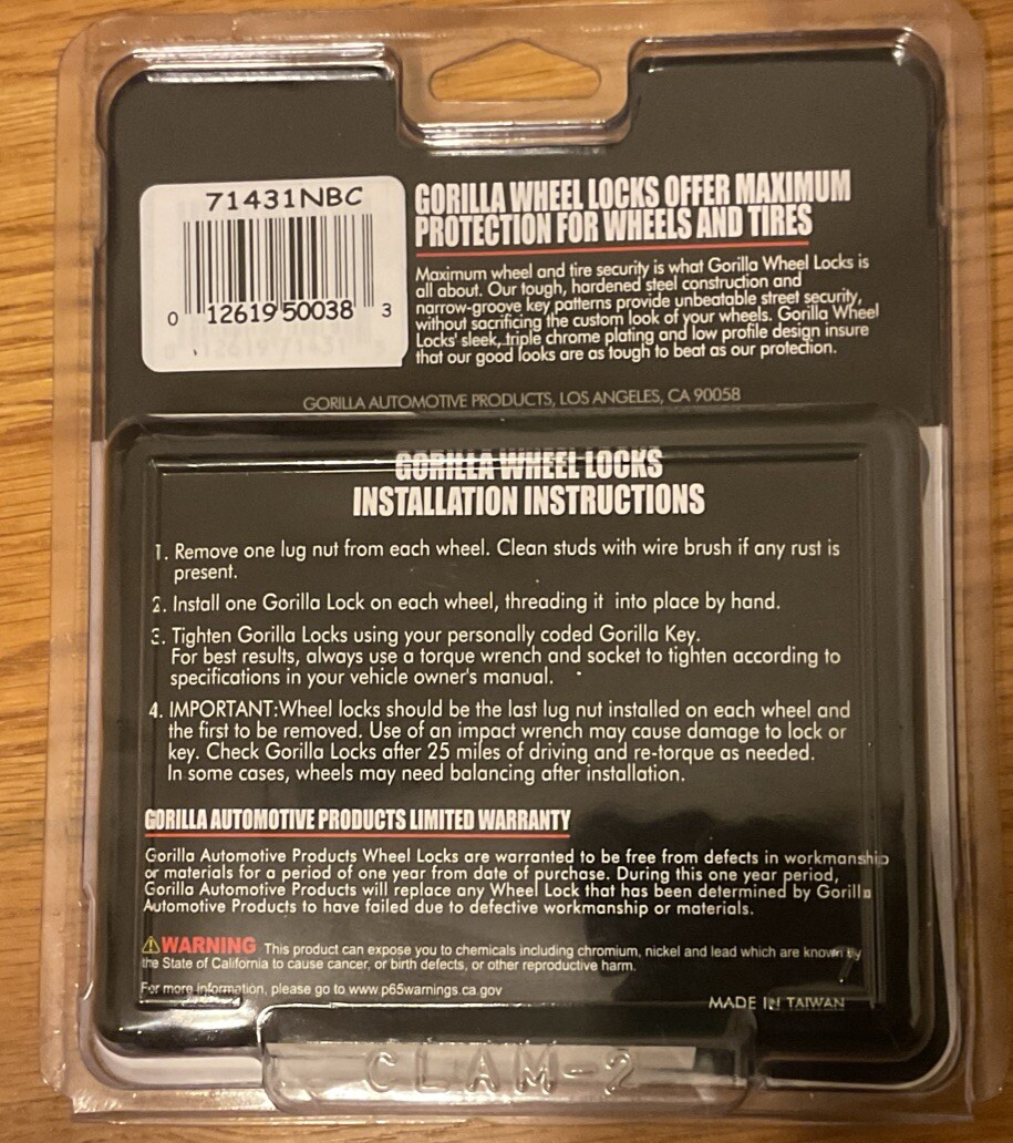 Enhance your vehicle's security with the Gorilla Automotive Gorilla Wheel Locks. These locks feature a robust 12mm x 1.50 thread size with a stylish black finish that complements any car or truck. The unique bulge acorn design adds an extra layer of protection against theft, making them an ideal choice for drivers who value safety and aesthetics. The versatility of these wheel locks is ensured by their manufacturer part number 71431NBC and interchange part numbers including 91138BC, 61631BC, and 91137BC, among others, which allow for compatibility with a range of vehicle models. Installation is straightforward, and the locks can be placed on the rear, left, front, or right of your vehicle. Enjoy the peace of mind that comes with the included 1-year manufacture warranty.