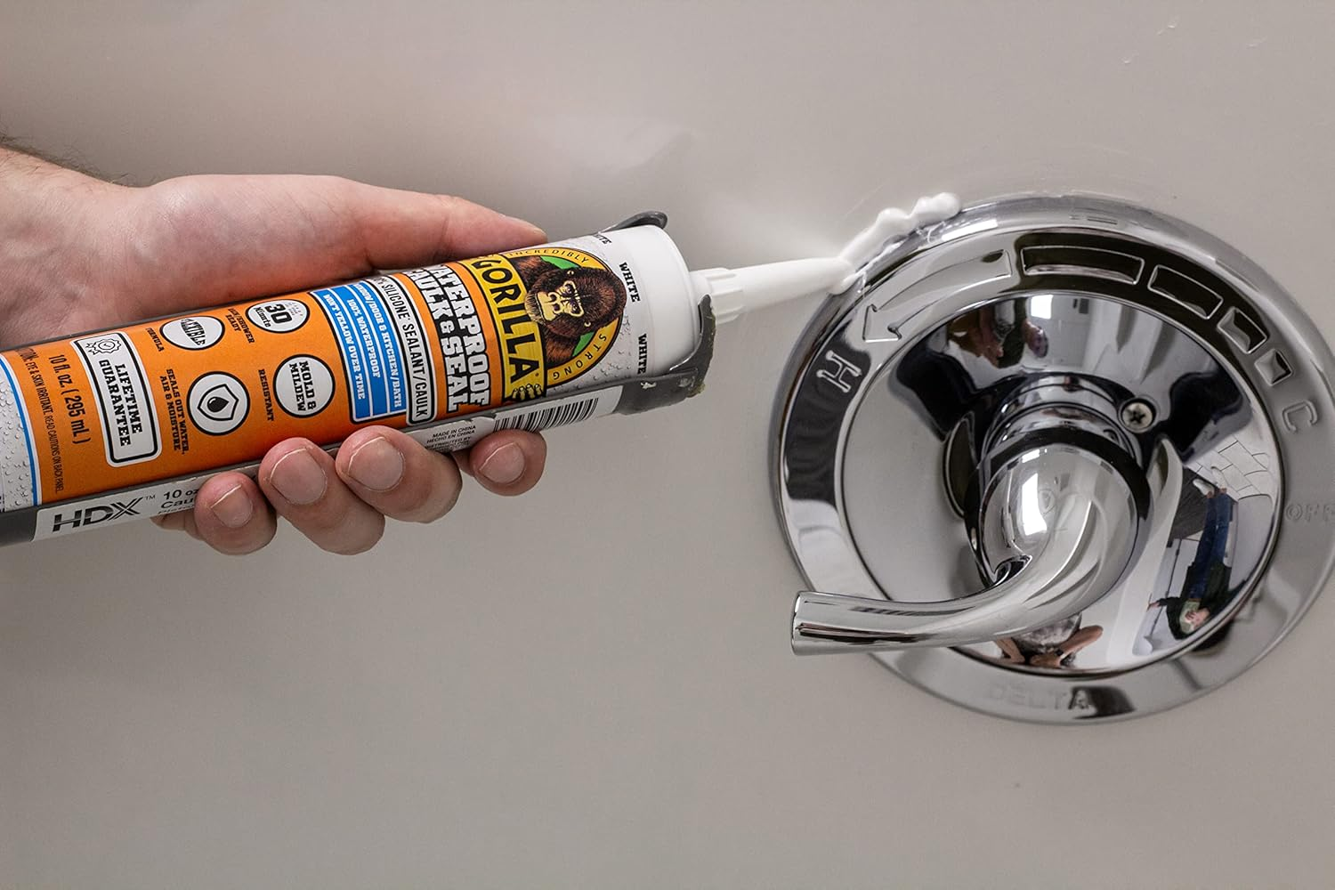 FOR YOU Gorilla Waterproof Caulk & Seal Silicone Sealant, 10Oz Cartridge (Pack of 1) - White Caulking Sealant for Kitchen, Window, Bath, Marine, Door and More FEATURES Speed meets strength: Caulk & Seal's silicone caulk is ready for water exposure in as little as 30 minutes All-purpose: Gorilla caulk works wherever the work is; Indoor and out, rain or shine after fully cured Waterproof sealant: This white caulk seals out air, water, and moisture with 100% silicone as cured Gorilla tough: This white silicone caulk is not only mold & mildew resistant, it won't yellow, shrink or crack over time Gorilla Waterproof Caulk & Seal 100% Silicone Sealant* seals out water, air and moisture and is great for kitchen, bath, window, doors, auto, marine plumbing, gutters and more! Ready for water exposure in just 30 minutes, this waterproof sealant is mold & mildew resistant. This silicone sealant won't yellow, shrink or crack over time! **Note: Do not use on wet, damp, frozen or contaminated surfaces. Not paintable. Not for use in underwater applications, aquariums, on brick, masonry, cementitious materials or on metals sensitive to corrosion including brass & galvanized metals. For general auto/marine applications – not for under hood or direct gasoline exposure. TO OPEN: Cut nozzle at 45° angle to desired bead size. Puncture inner foil seal. TO USE: All surfaces should be clean and free of dirt, grease, oil and old sealant. For gaps larger than ½ inch use backer rod. Best if applied above 40°F (5°C). 1) Insert into cartridge gun. 2) Apply sealant, pushing bead ahead of nozzle. 3) Smooth bead immediately after application, before skin forms. 30 MINUTE RAIN/SHOWER READY: Can be exposed to water in as little as 30 minutes based on a 3/16” bead at 70°F (21°C) and 50% humidity. Otherwise, wait 24 hrs. STORAGE: Replace cap tightly to prevent material from curing. Store in cool, dry location. To re-use nozzle, remove sealant from nozzle once cured. CLEAN-UP: Wipe wet sealant off project immediately with a dry cloth. Isopropyl alcohol may be used according to solvent manufacturer’s instructions. Click on the Gorilla link at the top of the page to see more Gorilla Tough products. Item model number 8060002 Manufacturer The Gorilla Glue Company Liquid Volume 10 Fluid Ounces Color White Product Dimensions 10 x 1.5 x 1.5 inches; 10 ounces Country of Origin USA Item Weight 10 Ounces Department Unisex-Adult Full Cure Time 24 Hours Is Discontinued By Manufacturer No Brand Gorilla Size 1 - Pack 1.5 inches x 10.0 inches x 1.5 inches. Weight: 10.0 oz PAYMENT We accept all payments via Ebay using Credit Cards , PAYPAL , Apple Pay and many others SHIPPING We are always working hard to ensure your package arrives as soon as possible. Please understand that some factors like weather, high postal traffic, and the performance of shipping companies are outside of our control. DELIVERY & RETURN POLICY We offer a 30-Day Return Policy on items in which you are not completely satisfied with. You have the option of a full-refund or an exchange of the item. No returns are available on items shipped outside of the USA.