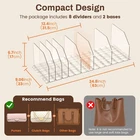 GotSpace Purse Organizer for Closet, Adjustable Clear Handbag 1-PACK, LuxeFusion Product Description Features Organize Your Purses Perfectly:This purse organizer for closet keeps your bags upright and neatly standing rather than crammed on top of one another. You can find the purse you want without digging through a stack and it’s easier to put the purse back. Adjustable Dividers: Adjustable shelf purse divider fit a variety of bag sizes, allowing each bag to have a suitable storage space, convenient for daily access and always keep it tidy. The 2 bases can be used individually or connected together to fit with wide or narrow place, maximizing closet space. Durable & Sturdy Design: Acrylic handbag organizers Made of high-transparency PET, which is more durable and longlasting. The transparent design lets you see everything at a glance, making it easy to grab the one you need. Three slots secure head, middle, and tail for extra stability. Easy to Install: No tools needed to assemble this purse Dividers. Simply slide the handbag organizer into the designated slots, adjust the dividers spacing according to the size of your items. Package Included: The clear purse organizer package includes 2 bases and 8 dividers. Suitable for storing purses, paper bags, clutch bags, small bags, as well as organizing child's books, files in the office, and various other items, effectively saving space in your home. Product Details Free Shipping All orders ship free and fast to your doorstep. Easy Returns Satisfaction guaranteed. 30-day returns, no questions asked. 24/7 Support Contact us anytime; we’re here to help, day or night. Brought to you by LuxeFusion – Quality you can trust.