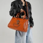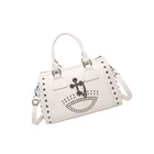 Features: Discover this Women Skull Handbag, a gothic inspires accessory with large capacity and studded perfect for making a fashion statement. produced from high quality PU leather, this handbag features a spacious compartment, two slot pockets, and a back wall pocket, ensuring you have ample space to organize your essential. Designed for fashion forward individuals who punk this bag is Suitable for little adults and trendsetters seeking to expressing their unique personality. Multifunction enough for various event, whether you're heading to work, evening party, or shopping, this handbag seamlessly complements both casual and formal outfits. With its detachable and adjustable shoulder strap, this handbag offers flexibility in carrying option, allowing you to switches between a handbag, shoulder bag, or crossbody bag effortlessly. Specifications: Component : PU Size: about 230x345mm/9.06x13.58inch Package Includes: 1xStudded Doctor Bag note: Please allow 1 to 3cm error due to manual measurement, please sure you do not mind before you bid, Due to the differences between different monitors, the picture may not reflect the actual color of the item.