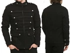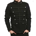 The "Gothic Military Band Black Jacket For Men" is a vintage-inspired coat with a Gothic and Steampunk aesthetic. Made from cotton with a polyester lining, this lightweight jacket features a stand-up collar, button closure, and zipper accents. The black color and solid pattern give it a classic and edgy look, suitable for various occasions such as travel, parties, casual outings, or formal events. Handmade with a regular fit, this military-style jacket is designed for all seasons and features a unique blend of biker, punk, and designer themes, making it a stylish and versatile addition to any wardrobe.