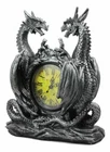• This Gothic Twin Dragons Table Clock is made of high quality polyresin. It is meticulously hand painted and polished. Clock is equipped with a battery panel and felt pad bottom. Color tone may vary from pictures. • This Gothic Twin Dragons Table Clock measures 11.25" tall, 10" wide and 5" deep approximately. • An antique metallic look mantel clock lends a legendary - and timely - touch to your home or office. This stunning dragon sculpture is a dramatic decoration and clock all in one! One AAA Battery required for the clock. Battery not included with the item. Ebros Gothic Twin Dragons Table Clock Statue With Roman Numerals In Metallic Look 11"H Video will open in a new window Using the mobile app? Copy this link into your browser: