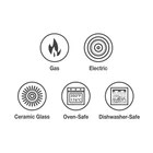 Cold-forged, heavy-gauge aluminum construction for even heat distribution with a durable, easy-to-clean Metallic Black porcelain enamel exterior Ceramic nonstick interior provides a healthy, quick release and easy cleanup cooking surface Ergonomically designed, cast stainless steel handles feature a stay-cool, soft-grip accent with a convenient hang-hole for use with pot racks Dishwasher and oven-safe (up to 350 Degree Fahrenheit or 176 Degree Celsius); compatible with gas, electric and ceramic glass cooktops Made in Italy, assembled and packaged in the USA and offered under a Lifetime warranty