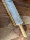 This vintage Kitchen marble rolling pin with wood cradle stand is a must-have for any baking enthusiast. Measuring at 19 inches in length, it is perfect for rolling out dough for pies, cookies, and other baked goods. The marbled pattern adds a touch of elegance to your kitchen, while the wood material provides a sturdy and reliable base for the rolling pin. Crafted with care, this rolling pin is easy to clean and features a variety of occasions, making it suitable for all your baking needs. Whether you're a professional baker or a home cook, this Kitchen marble rolling pin is a valuable addition to your kitchen tools. Comes with original box!!