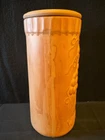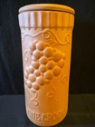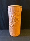 Elevate your wine-drinking experience with this vintage/retro style Gourmet Topf cooling sleeve. The terracotta material, with an embossed grape design, adds a touch of elegance to any occasion. Measuring 10.25 inches in height and 4.5 inches in diameter, this wine crock chiller comes with a coaster lid and a cover included, making it easy to use and transport. Please view photos for full description and note wear and tear.