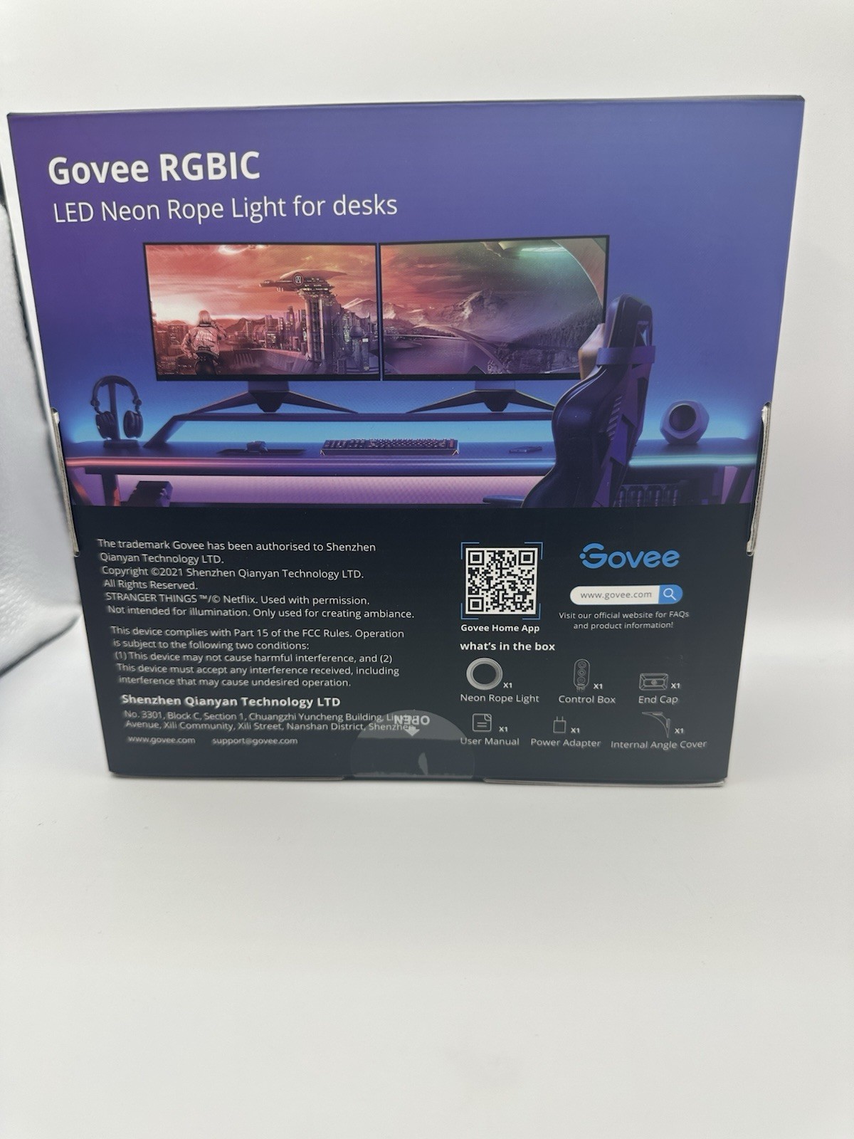 The NEW, Sealed Govee 6.56 Ft RGBIC Neon Rope Light Strip is designed for gaming desks, adding a vibrant color and creating a unique ambiance for your gaming setup. This neon rope light features a light sensor for automatic activation and comes in a sleek white color. With dimensions of 7.79 x 8.18 x 3.3 inches and a weight of 1.510 lbs, this home theater accessory is perfect for adding a futuristic touch to your gaming setup.