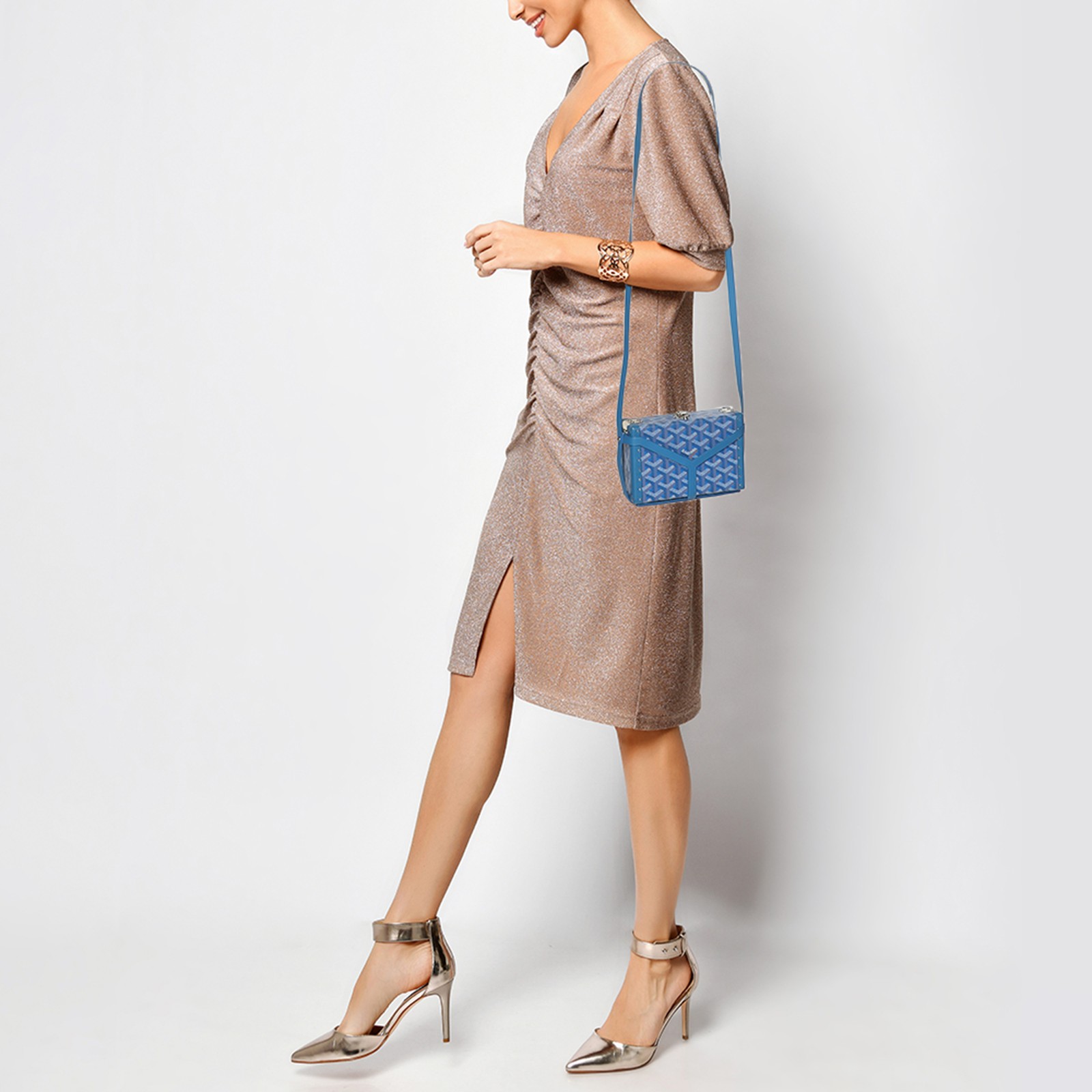 A brand that continues to thrive with the best of praises from people, Maison Goyard is a fine testament to luxury today. The brands designs are limited and made with the purest form of craftsmanship. This Minaudière Trunk bag is crafted from their Goyardine canvas and leather into a boxy shape. The bag has a cage like strap design that can be removed. It is a light, classy accessory worth investing in.Certified by The Luxury Closet - This item has gone through a detailed authentication process overseen by our experts. We offer a lifetime guarantee of authenticity on all our items. Import duties, taxes and charges are not included in the item price. These charges are the buyers responsibility. Please check with your country’s customs office to determine what these additional cost will be prior to buying. Our eBay Store About Us Contact Us Add to Favorite Sellers Goyard Blue Goyardine Coated Canvas and Leather Minaudière Trunk Bag $3197.7 A brand that continues to thrive with the best of praises from people, Maison Goyard is a fine testament to luxury today. The brands designs are limited and made with the purest form of craftsmanship. This Minaudière Trunk bag is crafted from their Goyardine canvas and leather into a boxy shape. The bag has a cage like strap design that can be removed. It is a light, classy accessory worth investing in. Product Details Brand Color Blue Dimensions Material Coated Canvas, Leather Size Outsole Width Outsole Length Heel Height Includes Certified by The Luxury Closet This item has gone through a detailed authentication process overseen by our experts. We offer a lifetime guarantee of authenticity on all our items. How We Check The in-house team of experts at The Luxury Closet is highly trained to verify the authenticity and the condition of the luxury products. They ensure that only 100% authentic items are put on sale.The evaluation process is unique with its own mix of assessment criteria and differs according to the category. Each item is evaluated based on the following combination of hallmarks, hardware, stitching, symmetry, material, craftsmanship, stamping, codes, hologram stickers, and packaging. Our authenticators also check if the items have been modified or amended (e.g., aftermarket diamonds, replaced batteries, repaired bags, etc.) International Buyers Import duties, taxes and charges are not included in the item price. These charges are the buyers responsibility. Please check with your country’s customs office to determine what these additional cost will be prior to buying.