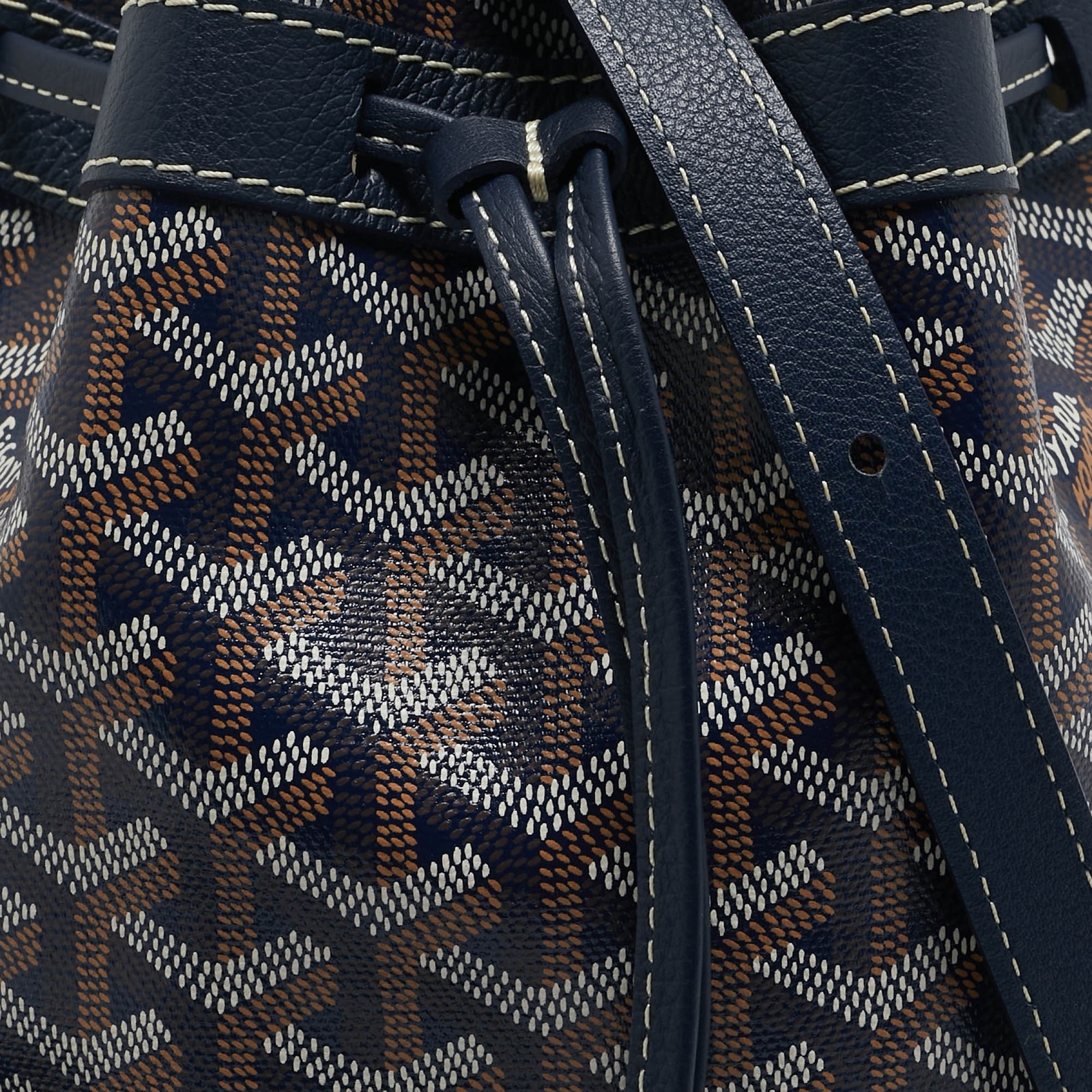 The Goyard Flot bucket bag is a stylish and compact accessory designed for fashion conscious individuals. Crafted with a combination of coated canvas and leather materials, this bag showcases the iconic Goyardine print in navy blue, offering a touch of luxury and sophistication. With its bucket shaped design and practical size, it provides ample storage space while remaining sleek and elegant, making it a versatile choice for any occasion.Certified by The Luxury Closet - This item has gone through a detailed authentication process overseen by our experts. We offer a lifetime guarantee of authenticity on all our items. Import duties, taxes and charges are not included in the item price. These charges are the buyers responsibility. Please check with your country’s customs office to determine what these additional cost will be prior to buying. Our eBay Store About Us Contact Us Add to Favorite Sellers Goyard Navy Blue Goyardine Coated Canvas and Leather Petit Flot Bucket Bag $1768.8 The Goyard Flot bucket bag is a stylish and compact accessory designed for fashion conscious individuals. Crafted with a combination of coated canvas and leather materials, this bag showcases the iconic Goyardine print in navy blue, offering a touch of luxury and sophistication. With its bucket shaped design and practical size, it provides ample storage space while remaining sleek and elegant, making it a versatile choice for any occasion. Product Details Brand Color Navy Blue Dimensions Material Coated Canvas, Leather Size Outsole Width Outsole Length Heel Height Includes Certified by The Luxury Closet This item has gone through a detailed authentication process overseen by our experts. We offer a lifetime guarantee of authenticity on all our items. How We Check The in-house team of experts at The Luxury Closet is highly trained to verify the authenticity and the condition of the luxury products. They ensure that only 100% authentic items are put on sale.The evaluation process is unique with its own mix of assessment criteria and differs according to the category. Each item is evaluated based on the following combination of hallmarks, hardware, stitching, symmetry, material, craftsmanship, stamping, codes, hologram stickers, and packaging. Our authenticators also check if the items have been modified or amended (e.g., aftermarket diamonds, replaced batteries, repaired bags, etc.) International Buyers Import duties, taxes and charges are not included in the item price. These charges are the buyers responsibility. Please check with your country’s customs office to determine what these additional cost will be prior to buying.