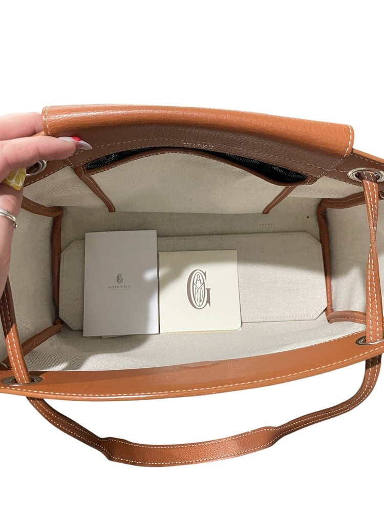 Goyard Sac Rouette Handbag. Comes with dust bag, and Goyard envelope. The photos are of the exact item you will receive. Please inspect them carefully for condition. Thank you for checking out our eBay site! We are a pawnshop in Santa Rosa, CA. We specialize in estate buying, Rolex, jewelry, coins, and luxury handbags. We also take small electronics, tools, musical instruments, and whatever other cool stuff comes through our door! Thanks for looking!