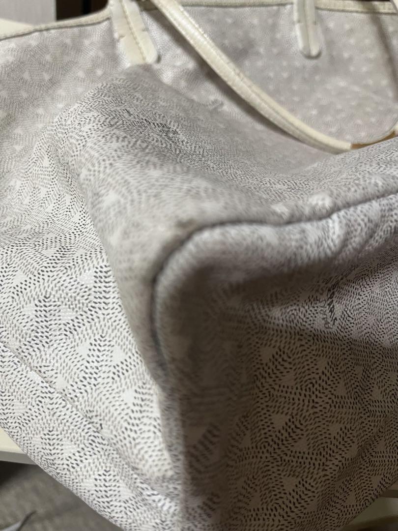 This Goyard Saint Louis PM in white is a gorgeous, authentic piece with a chic, timeless design. The slight crease from storage is barely noticeable and will smooth out once filled. The genuine leather feels luxurious, and while there are minor stains and tears, they add character. Shipping is fast with DHL, and the seller is responsive—great for anyone wanting a high-end bag without the brand-new price tag!