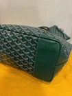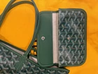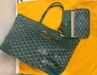 The Goyard Saint Louis Tote PM Green Bag is a stylish and practical tote bag designed for women. With a rectangular shape and double green leather handles, this bag exudes sophistication. The exterior is made of durable canvas material in a vibrant green color, with silver hardware accents. The interior features a beige lining and a spacious compartment, making it perfect for carrying everyday essentials. The Goyard brand is synonymous with luxury and quality, and this tote bag is no exception. It also comes with an original dust bag, adding to its appeal as a must-have accessory for any fashion-forward woman. Condition: excellent, never worn. Dust bag included.