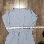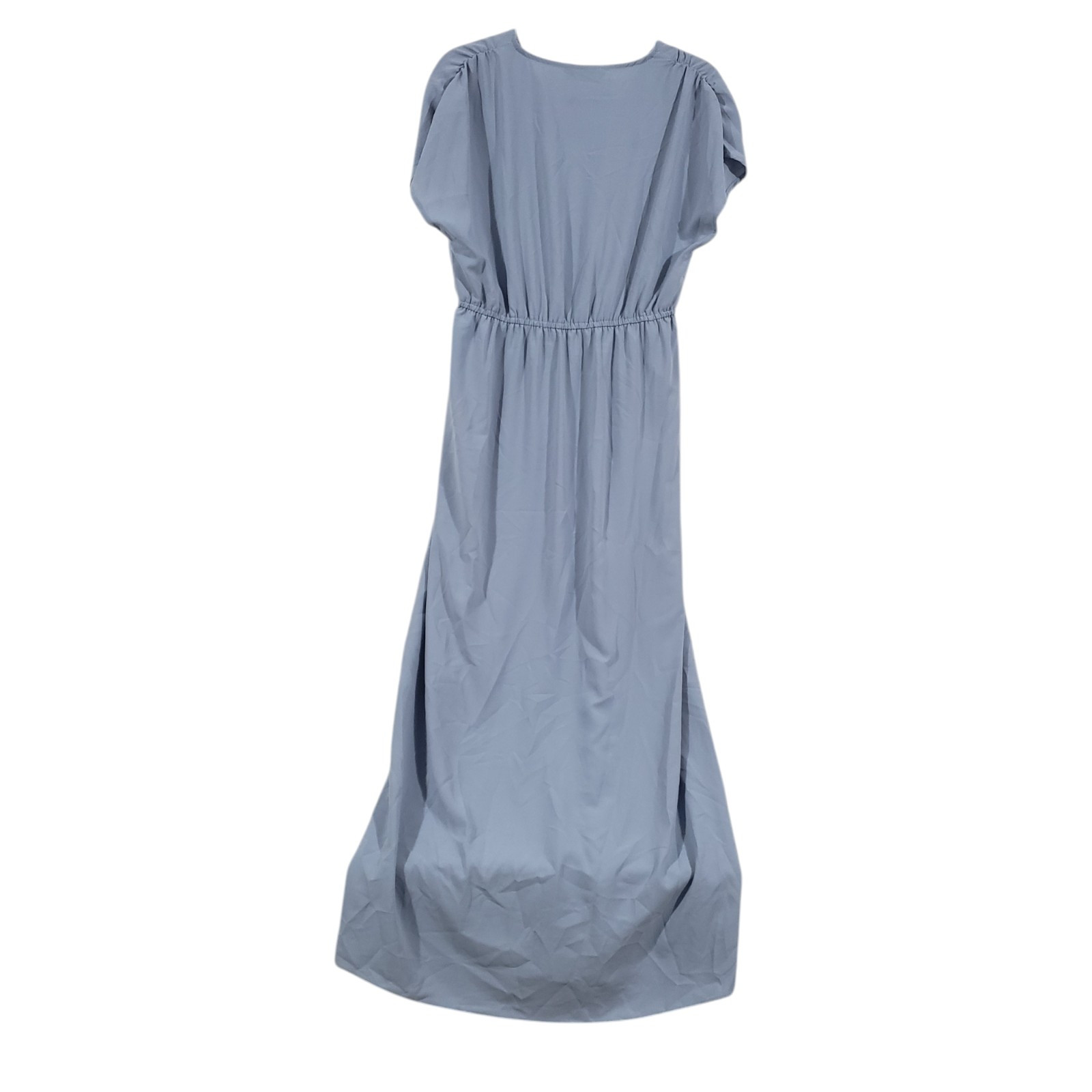 This dress is absolutely stunning—light blue and effortlessly elegant with a flattering surplice neckline and flowy silhouette. The hidden snap button and elastic waist with drawstring ensure a perfect fit, while the high slit adds a touch of chic. So comfortable and versatile for anything from a date night to a beach getaway. The fabric is soft and breathable, making it ideal for all-day wear. Owned but well cared for—ready to shine again!