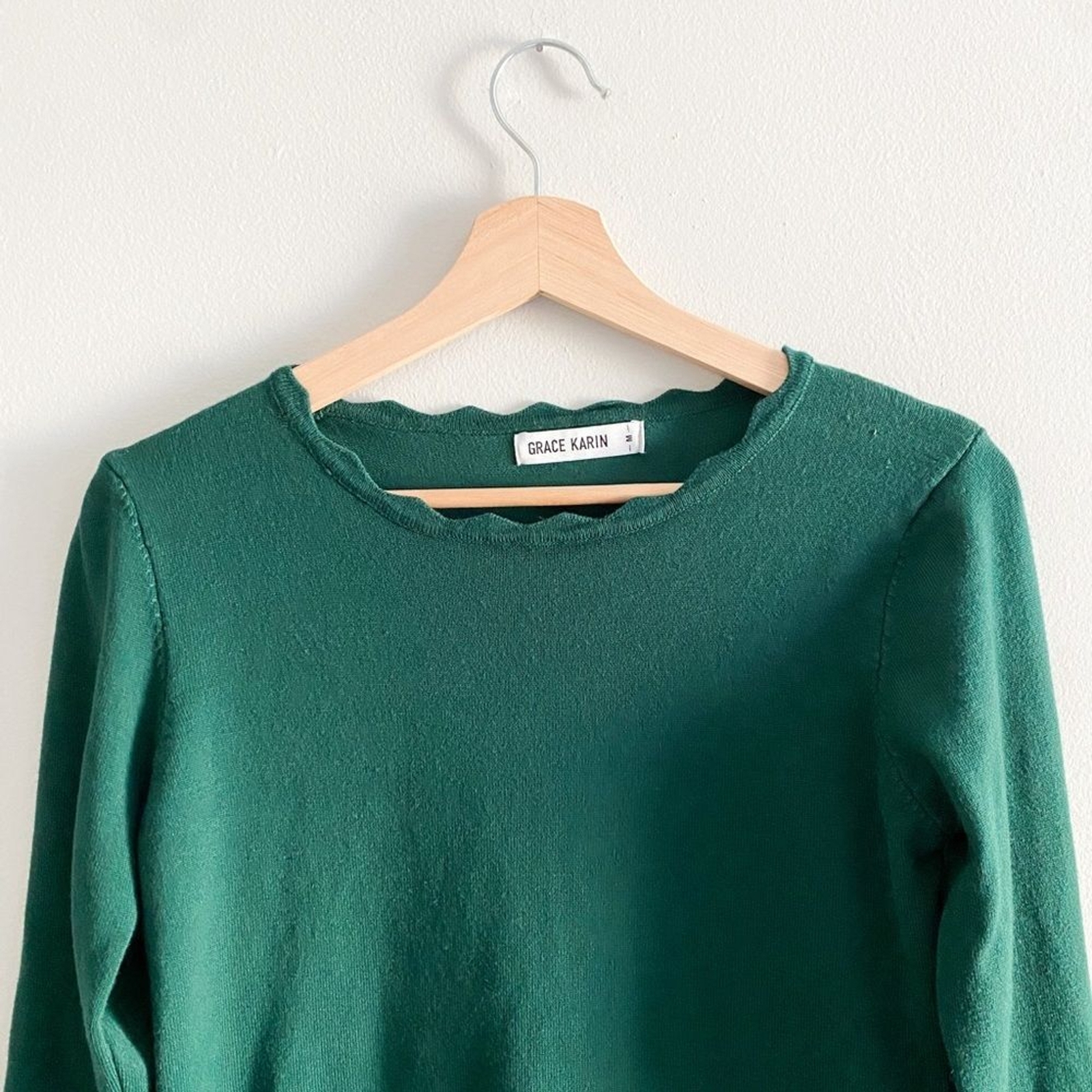 Grace Karin • Stretchy long sleeve pullover sweater blouse top • Green • Womens size medium • measurements in photos