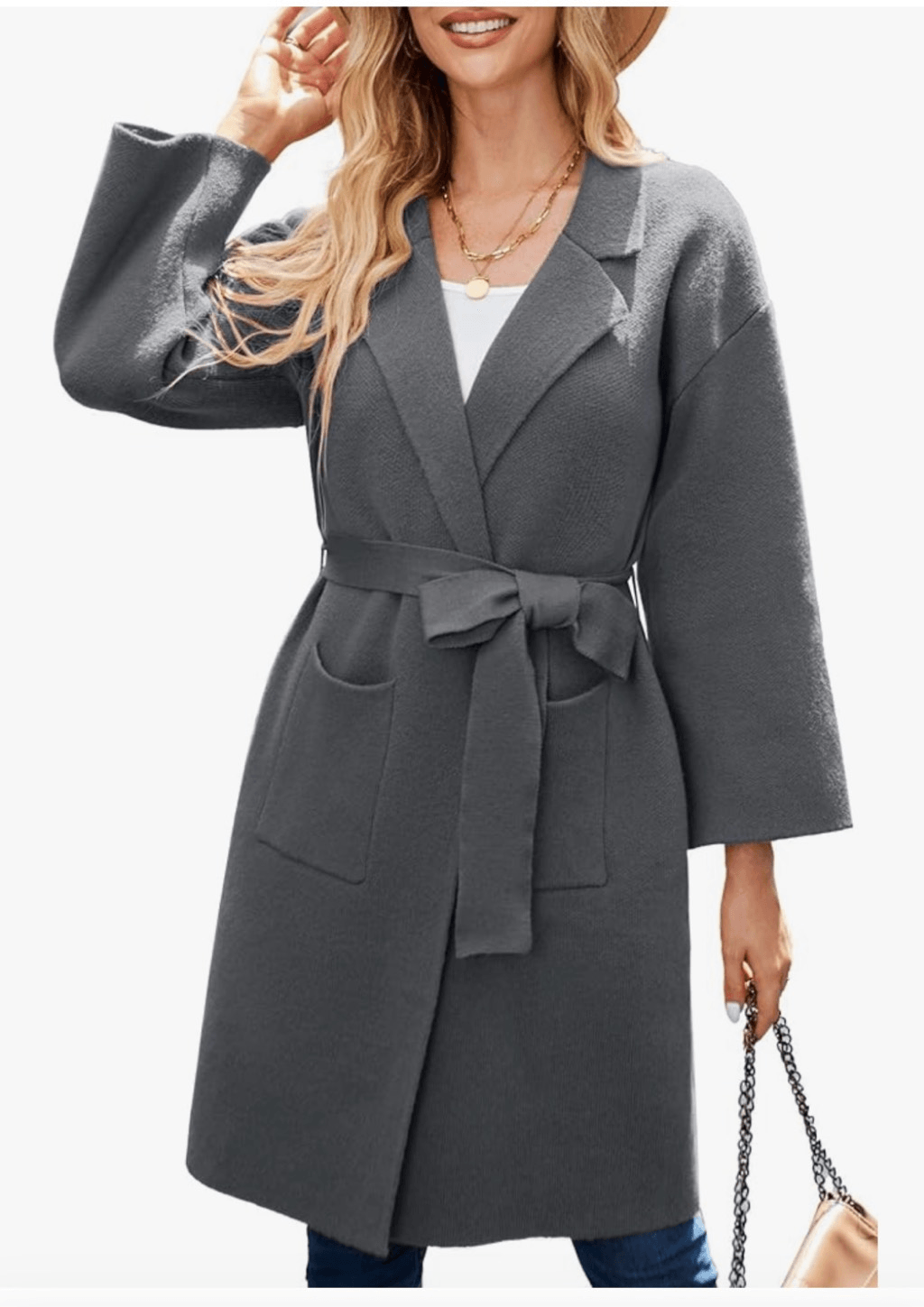 Love this chic cardigan jacket! The collared design and tie waist add such a polished look, and the pockets are a nice touch. Fits perfectly as a small—soft, stylish, and practical. NWT makes it even better, and the grey is so versatile. Highly recommend!
