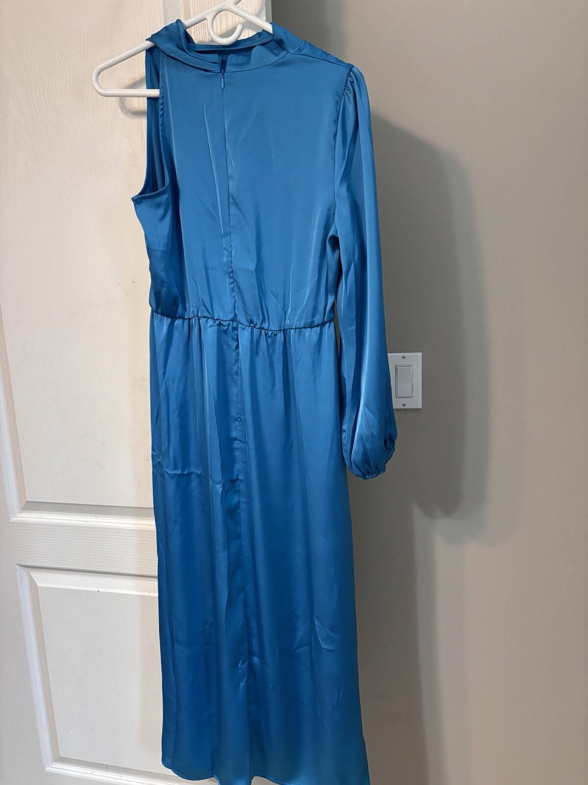 Grace Karin Teal Satin One-Shoulder Midi Dress NWT