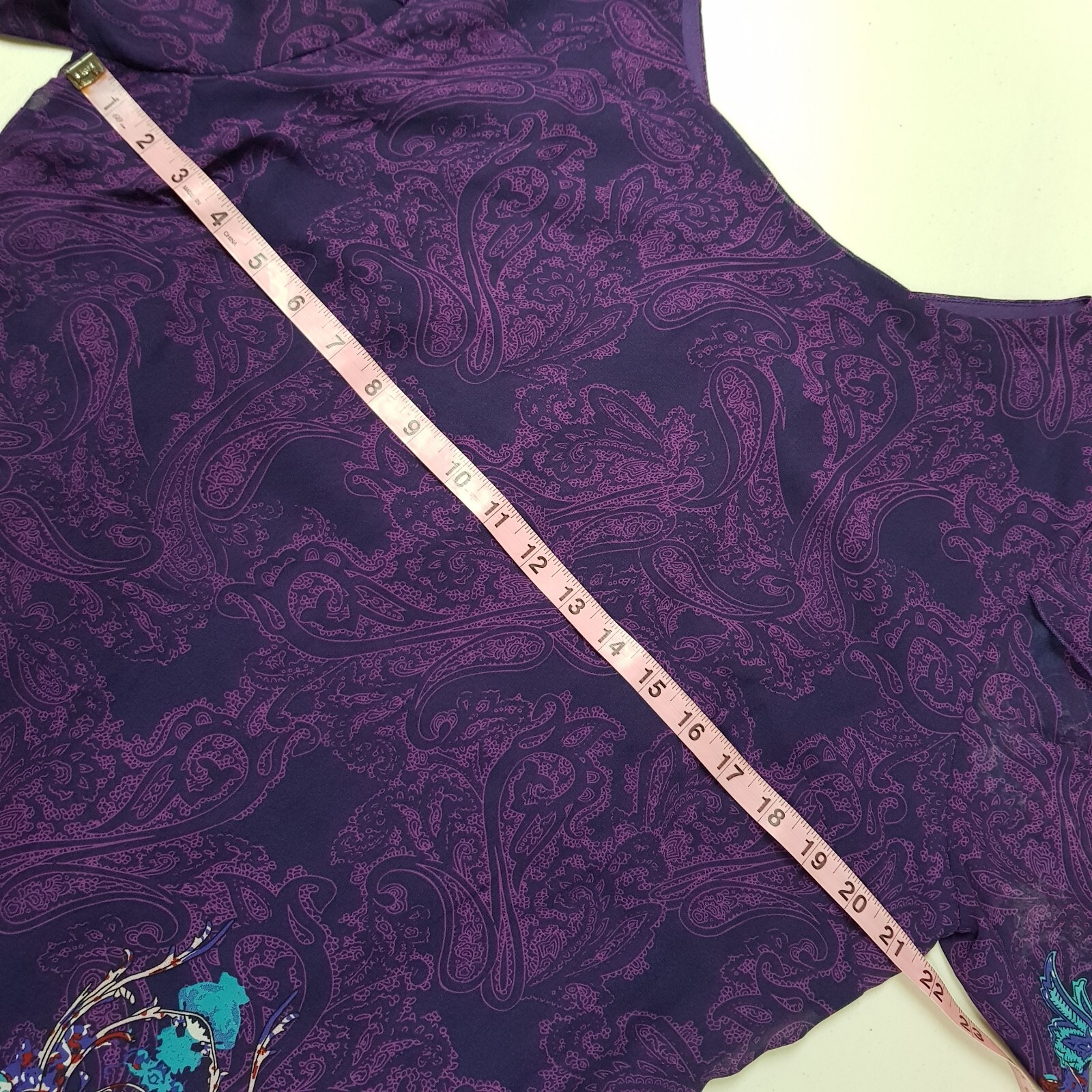 Grace Karin Women’s XL Purple Paisley Print Chiffon Shift Dress Split Sleeve