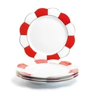 Plate Diameter: 11" Pattern: Solid Color Care Instructions: Machine Washable Original/Licensed Reproduction: Original Brand: Grace's Teaware Style: Art Deco Set Includes: Plate Set Type: Dinner Plate Shape: Scallop Material: Porcelain Color: Red, White and Gold Occasion: All Occasions