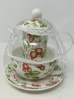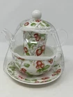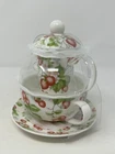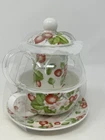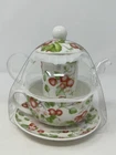 Indulge in a delightful tea drinking experience with the Grace Teaware 5-Piece Tea For One Set. This charming teaware features a round shape, with a beautiful multicolor finish that adds a touch of elegance to your home. The teapot is made of porcelain, and comes with an infuser for steeping loose tea leaves. This 5-piece set includes a teapot, lid, cup, and saucer with handles, all dishwasher safe for easy cleaning and reusable for all occasions. The strawberry-themed teacup adds an extra touch of charm to your tea drinking experience. Enjoy a cup of your favorite tea without worrying about the condition of this brand new set. beautiful set to display on your coffee bar ❤️❤️