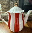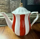Add a touch of holiday cheer to your tea time with this beautiful Grace Teaware Fine Porcelain Teapot. The red, white, and gold striped pattern, combined with scalloped accents, makes for a festive addition to any table setting. Measuring 5 inches in diameter and standing at 8.5 inches tall, this contemporary style teapot is perfect for all occasions. Crafted from high-quality porcelain and finished with a glossy touch, this teapot is both dishwasher safe and durable. Whether you're hosting a Christmas-themed tea party or simply enjoying a cup of peppermint tea, this Grace Teaware Fine Porcelain Teapot is sure to impress.