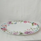 Grace Teaware Floral Oval Porcelain Serving Tray / Platter 14* 9.5"x 14" Really Good Condition Weighs 1 lb 12 oz Shipping USPS This beautiful Grace Teaware serving tray/platter is perfect for any tea party or gathering. The floral pattern in a variety of colors adds a touch of cottage style to any occasion. Measuring 14 inches in length and 9.5 inches in width, this small oval-shaped piece is made of glossy porcelain material. The tray is microwave and dishwasher safe, making it convenient for use and cleaning. Its multicolor design and wild rose theme make it a great addition to any collection. This piece is perfect for serving tea or other beverages and is sure to impress your guests.