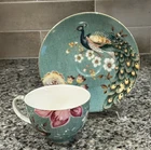 Grace Teaware Peacock Lotus Garden Flat cup and saucer set No chips/cracks/crazing/loss of detail Cup: 3.75”D 4.75”L 2.5”H Saucer: 6.25”D Please message with any questions.