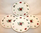 Grace Teaware Poinsettia & Holly Rimmed Porcelain 10.5" Dinner Plates Set of Four New Dishwasher safe. NOT microwave safe due to the gold accent trim on the outside rim. Measures approx. 10 1/2" diameter. Will set a gorgeous table for the holidays. Matching pieces sold in our other listings. Please check them out. New never used. Stored in a smoke free warehouse environment.