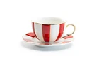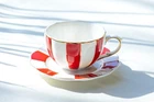 Occasion: All Occasions Set Includes: Cup, Saucer Color: Red, White and Gold Brand: Grace's Teaware Material: Gold, Porcelain Type: Tea Cup & Saucer Capacity: 7oz Service For: 1 Pattern: Stripes Style: Classic