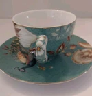 Very pretty teacup and saucer set with a Peacock and flower design. No chips or cracks. See photos for complete description, measurements, and condition