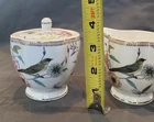 New without tags Graceware porcelain floral and birds silver color trim cream and sugar set. The colors and signs are bright and vibrant. There are no apparent chip or cracks. Absolutely beautiful and practical cream and sugar set.