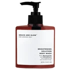 Grace and Glow Brightening Solution Body Wash Netto: 400 ML 1. BENEFITS Helps skin look brighter Provides a luxurious perfume sensation Cleanses skin to look radiant 2. MAIN COMPOSITION Niacinamide Glutathione 3. HOW TO USE Pour enough Body Wash on your hands or shower puff, gently rub slowly and clean all parts of the body, let stand for 30 seconds. Rinse with water. Use every day for maximum results
