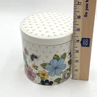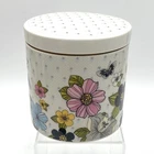 Size:MediumTheme:Butterflies, FloralLid Type:nonePattern:Floral & ButterfliesItem Length:approx. 4 1/4' acrossVintage:NoMaterial:Ceramic & PorcelainMPN:n/aItem Width:approx. 4 1/4" acrossNumber of Items in Set:2Brand:Grace's TeawareNumber of Jars Included:1Style:Retro / Vintage LookSet Includes:LidColor:MulticolorNumber of Compartments:1Antique:NoType:CanisterOriginal/Licensed Reproduction:OriginalItem Height:Approx. 4.5" including lidSeller Notes:“Great pre-owned. See photos. Thanks!”Number in Pack:1Features:Fun and Colorful, With LidCountry/Region of Manufacture:China