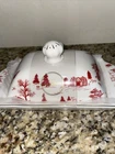 Grace Teaware Holiday Winter Village Red & White Covered Butter Dish NEW