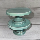 Grace's Teaware Mini Pedestal Cupcake Cake Stands Iridescent Teal Gold Set of 2 Pre-owned in good used condition. No chips, cracks or crazing. All items are cleaned and sanitized to the best of our ability and are ready for use. Item pictured is the exact item you will receive. Unless an item is listed as new with tags (NWT) is perceived as a pre-owned used item and may show normal signs of wear. Please see all photos for accurate description of condition. Please let us know if you have any questions. Thank you for visiting LaLa's Fancy1s! **Cupcake candle is for display only and is not included in purchase.
