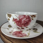 Some scratches on the saucer and on the teacup. Please see measurements and review all pictures provided which show condition and zoom in to get a closer look. Let me know if you have any questions! : )