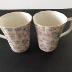 Grace's Teaware Two Pink Floral Scallop Rims with Gold Trim Tea Coffee Mugs Cups with Thumb Rest 9 fl oz Capacity Used in Good Condition: No Chips, Cracks, Crazing, Scratches or Staining Thank You for Viewing