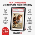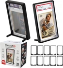 Graded Trading Card Frame Display with Folding Stand | 10 Pack (Black) Black Product Details Brand: COLLECT3D Color: Black Material: Thermoplastic Polyurethane Special Feature: Trading Card Display Style: Modern Recommended Uses For Product: For Trading Cards Product Dimensions: 5.6"L x 3.43"W x 0.57"H Water Resistance Level: Water Repellent Opening Mechanism: Hinge Shape: Rectangular Number of Items: 10 Unit Count: 10.0 Count Item Package Quantity: 1 UPC: 860012414208 Manufacturer: Collect3D Item Weight: 7 ounces Special Features: Trading Card Display Batteries Included?: No Batteries Required?: No Brand: COLLECT3D Color: Black Material: Thermoplastic Polyurethane Special Feature: Trading Card Display Style: Modern Unique foldable Incorporated card stand makes it very easy to display your favorite trading cards or store your collection. Our display card stands are designed for a perfect secure fit to provide protection and style to your collectibles. The simple design of the display frame makes for a no hassle experience to setup and enjoy your trading card collection. The display frame is specifically designed with a stable base that will not accidentally tip over easily like other stands. Accidental tip overs from a simple nudge are a thing of the past!