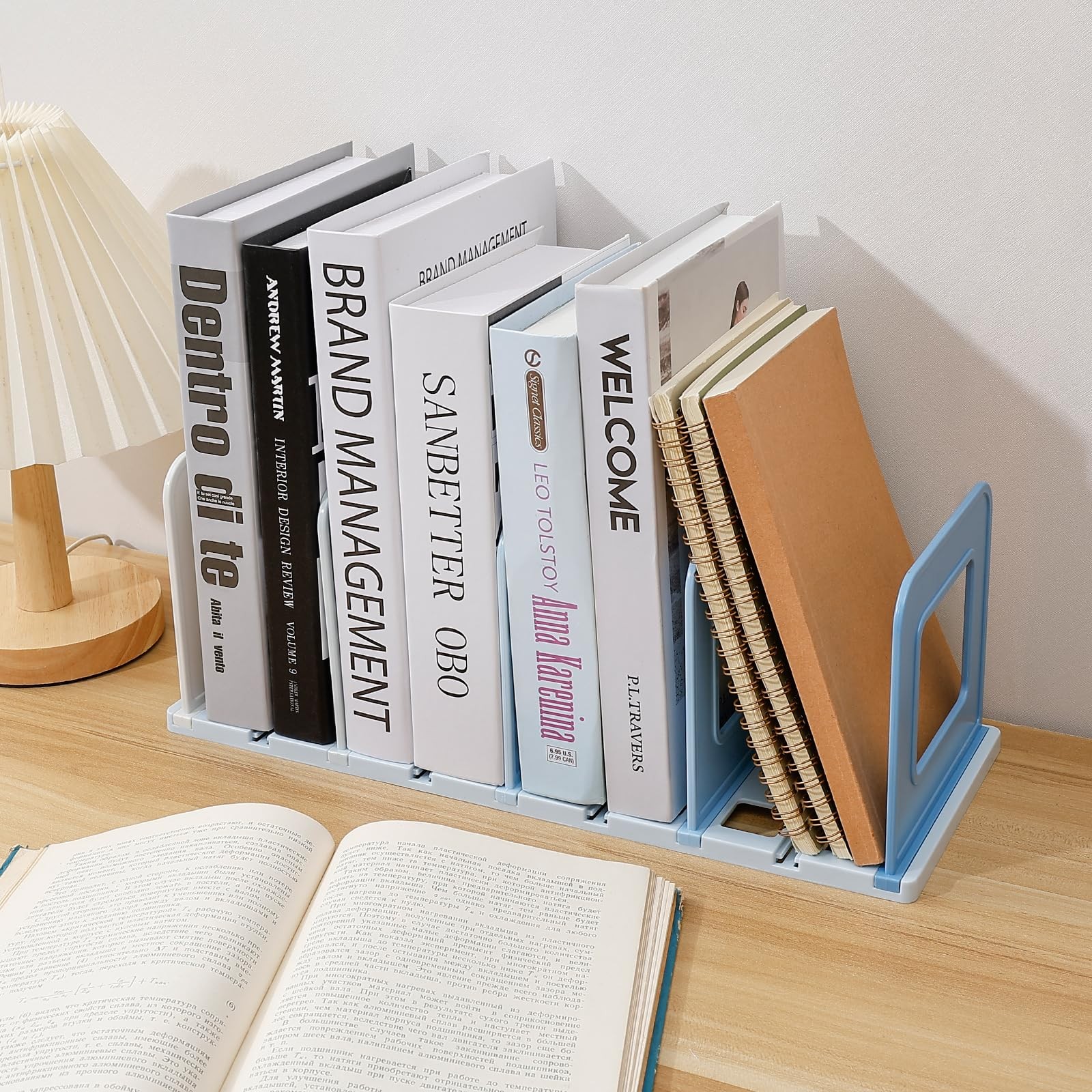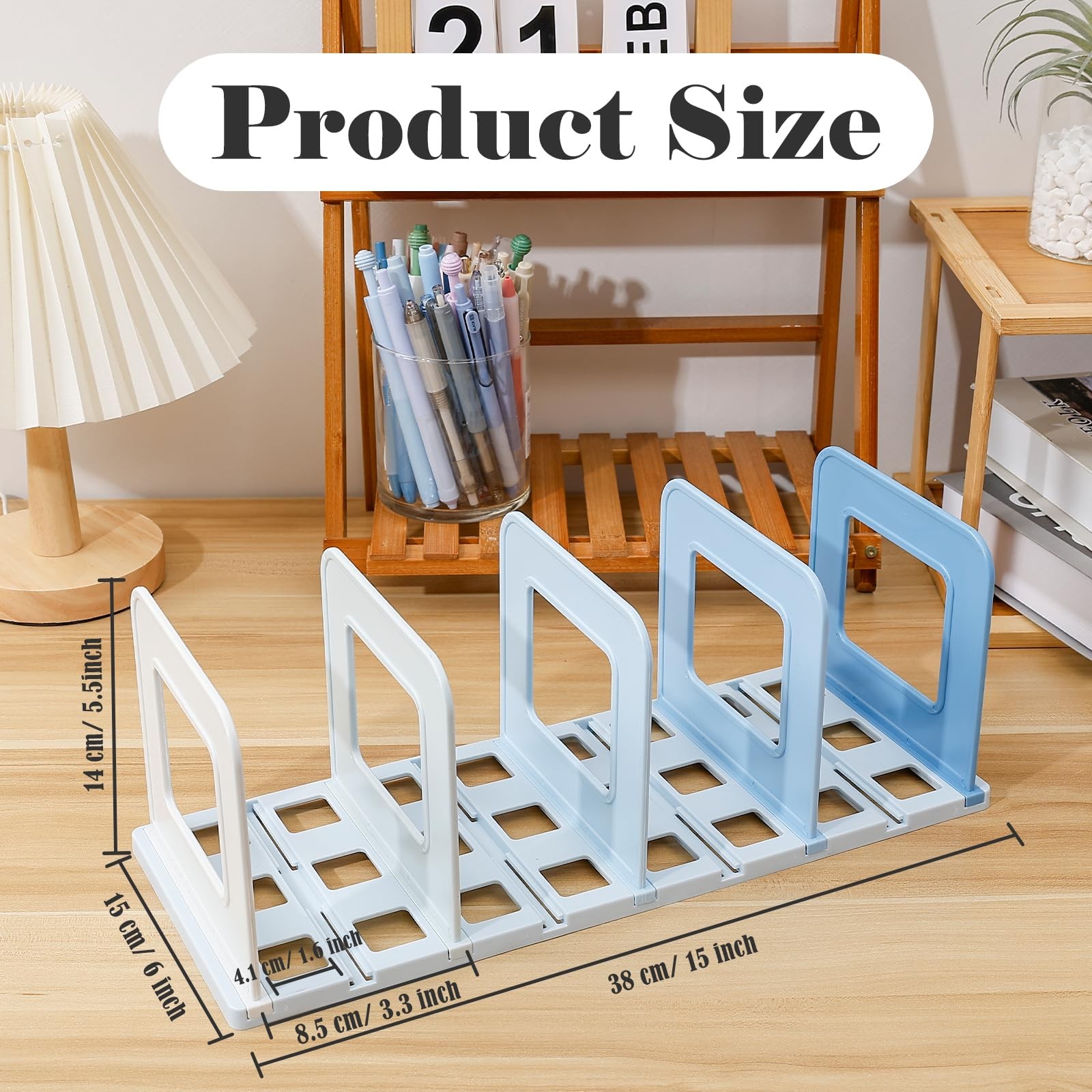 The file sorter provides easy access to your items. With sleek appearance and lovely color, this would be a good decor of your space and can keep your desktop or shelf tidy and more organized. Package Includes: 1 pc adjustable file sorter, there are 4 gradient colors to choose from, pink, purple, green and blue; the binder shelf size is 38 x 15 x 14 cm/ 15 x 6 x 5.5 in Adjustable & Customizable Space: the file sorter comes with 5 partitions and 1 base, movable partitions allow you to freely adjust the space between file sorter, accommodating books of various thicknesses from paperbacks to thick encyclopedias Easy to Install: Just insert the dividers into the slots in the base; the magazine holder can be easily removed when not in use, making it easy to carry and clean without taking up the space Easy to Move: When you want to move the position of the bookshelf, you can pick up the whole shelf and move it without taking out the books on it Multi-Purpose Desktop Organizer: In addition to books, it can be used to neatly store documents, cookbooks, DVDs or display collectibles
