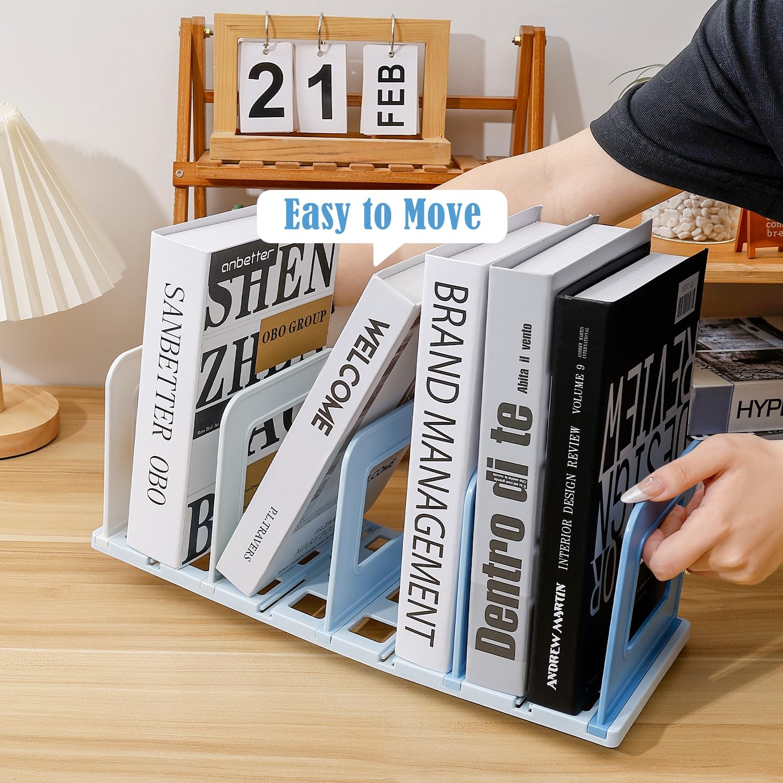 The file sorter provides easy access to your items. With sleek appearance and lovely color, this would be a good decor of your space and can keep your desktop or shelf tidy and more organized. Package Includes: 1 pc adjustable file sorter, there are 4 gradient colors to choose from, pink, purple, green and blue; the binder shelf size is 38 x 15 x 14 cm/ 15 x 6 x 5.5 in Adjustable & Customizable Space: the file sorter comes with 5 partitions and 1 base, movable partitions allow you to freely adjust the space between file sorter, accommodating books of various thicknesses from paperbacks to thick encyclopedias Easy to Install: Just insert the dividers into the slots in the base; the magazine holder can be easily removed when not in use, making it easy to carry and clean without taking up the space Easy to Move: When you want to move the position of the bookshelf, you can pick up the whole shelf and move it without taking out the books on it Multi-Purpose Desktop Organizer: In addition to books, it can be used to neatly store documents, cookbooks, DVDs or display collectibles