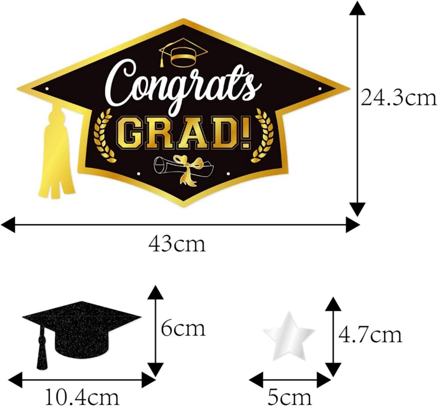 Store New Arrivals Add to Favorite View Feedback Contact Graduation Cap Garland Congrats Grad Decorations Grad Hats Decor Graduation Cap Banner for 2025 High School College Grad Party Favors Description Item model number A887 Color As The Picture Shows Special Feature Sturdy, Durable Product Dimensions 17.7"L x 10.2"W Material Cardboard Country of Origin China Specific Uses For Product Outdoor, Indoor Item Weight 2.08 ounces Theme Holiday Recommended Uses For Product Branches Occasion Graduation, Nursing, Doctor Grad Celebrations Target Audience Unisex Package Includes: You will receive 1 pack of graduation cap banner, which fully caters to the graduation theme party, enough quantity to meet your decorative needs. Quality Material: The graduation cap banner is made of quality cardboard, sturdy and durable, it adds a little sparkle to your graduation party decor, bright in colors and not easy to fade, you can use them for many times. Pre -assembled: The graduation banner is pre-assembled, which makes the graduation banners more easier to decorate or hang anywhere you feel like. This black graduation cap decoration is also Ideal for outdoor graduation decorations or grad cap decorations. Graduation Decoration Supplies: Show the world you graduated with this black and gold graduation cap banner, this day is a worth remembering for. So celebrate your graduation with our beautiful graduation cap garland for grade graduation decorations class of 2025 backdrop. Gather your friends and family and create memories with black and gold graduation party supplies for class of 2025 decorations. Wide Application: Perfect class of 2025 decorations for high school, college, nursing, doctor grad celebrations, suitable for graduation party decorations, classroom decor, graduate party decor, add a deep graduation atmosphere to your grad party. Specification: Material: Cardboard Color: As the picture shows Size: Large graduation cap - 43 x 24.3cm /16.9 x 9.6 inches, small black graduation cap - 10.4 x 6cm /4.1 x 2.4 inches, star - 5 x 4.7cm /2.0 x 1.9 inches Weight:50g Package Included: 1 x Graduation Cap Garland Policy on Product Sourcing and Fulfillment Dear Valued Customers, We would like to clarify an important aspect of our business operations to ensure transparency and trust in our relationship with you. Product Fulfillment: Fulfillment by Amazon (FBA): The products are stored in Amazon Fulfillment Centers. This storage solution ensures that the inventory is kept in a secure and climate-controlled environment, which helps maintain the quality and safety of the products. Efficient Delivery: Utilizing Amazon's fulfillment services allows us to leverage their robust logistics network to provide you with fast and reliable shipping. This means you receive your purchases in a timely manner with the added assurance of Amazon's trusted delivery systems. Customer Assurance: Quality Control: Every product is carefully selected and undergoes rigorous quality checks before being listed for sale. Our commitment is to provide you with high-quality items that meet your expectations. Secure Storage: Amazon's Fulfillment Centers are renowned for their high standards of security and efficiency. Your products are stored safely until they are shipped to you. Customer Support: Should you have any questions or concerns regarding your purchase, our customer support team is readily available to assist you. We are dedicated to ensuring your satisfaction with every transaction. We appreciate your business and are committed to providing you with a seamless and satisfactory shopping experience. Thank you for your trust and understanding. Sincerely, -Manager- Shipping Policy and Expectations Dear Valued Customers, We are committed to ensuring that your package arrives as quickly as possible. However, we kindly ask for your understanding regarding certain factors that may occasionally affect shipping times. Our Commitment: Prompt Processing: We strive to process and dispatch your orders promptly to minimize any delays. Reliable Shipping Partners: We work with reputable shipping companies to ensure your packages are handled with care and delivered efficiently. External Factors: While we do everything within our power to expedite your order, please note that some factors are beyond our control: Weather Conditions: Severe weather can impact shipping routes and cause delays. High Postal Traffic: During peak seasons, such as holidays, the increased volume of packages can lead to longer delivery times. Shipping Company Performance: The performance and schedules of shipping companies may vary, potentially affecting delivery times. We appreciate your patience and understanding in these situations. Rest assured, we are doing everything possible to get your package to you as soon as possible. Customer Support: If you have any questions or concerns about your order, please do not hesitate to contact us. Our customer support team is here to assist you and provide any necessary updates on your shipment. Thank you for your trust and continued business. Shipping Policy and Customer Satisfaction Shipping Information: Service Area: We offer shipping to the lower 47 states. Please confirm with us about the delivery date before completing your purchase. Thank you. Address Requirements: We do not accept P.O. Boxes. Please provide a physical address for delivery. Shipping Restrictions: Unfortunately, we are unable to ship items to the state of Ohio and California due to shipping agreements and restrictions. International Shipping: eBay International Shipping Hub: For shipping outside of the continental USA, we only use eBay's International Shipping Hub. The item is shipped to Illinois and then sent to the rest of the world. Duties and Taxes: International customers are responsible for all duties and taxes. Please continue to check out to calculate the shipping costs for your country. Inquiries: Messages regarding eBay's International Shipping Program mu
