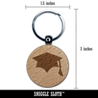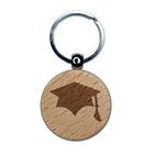 Graduation Cap Solid Engraved Wood Round Keychain Tag Charm